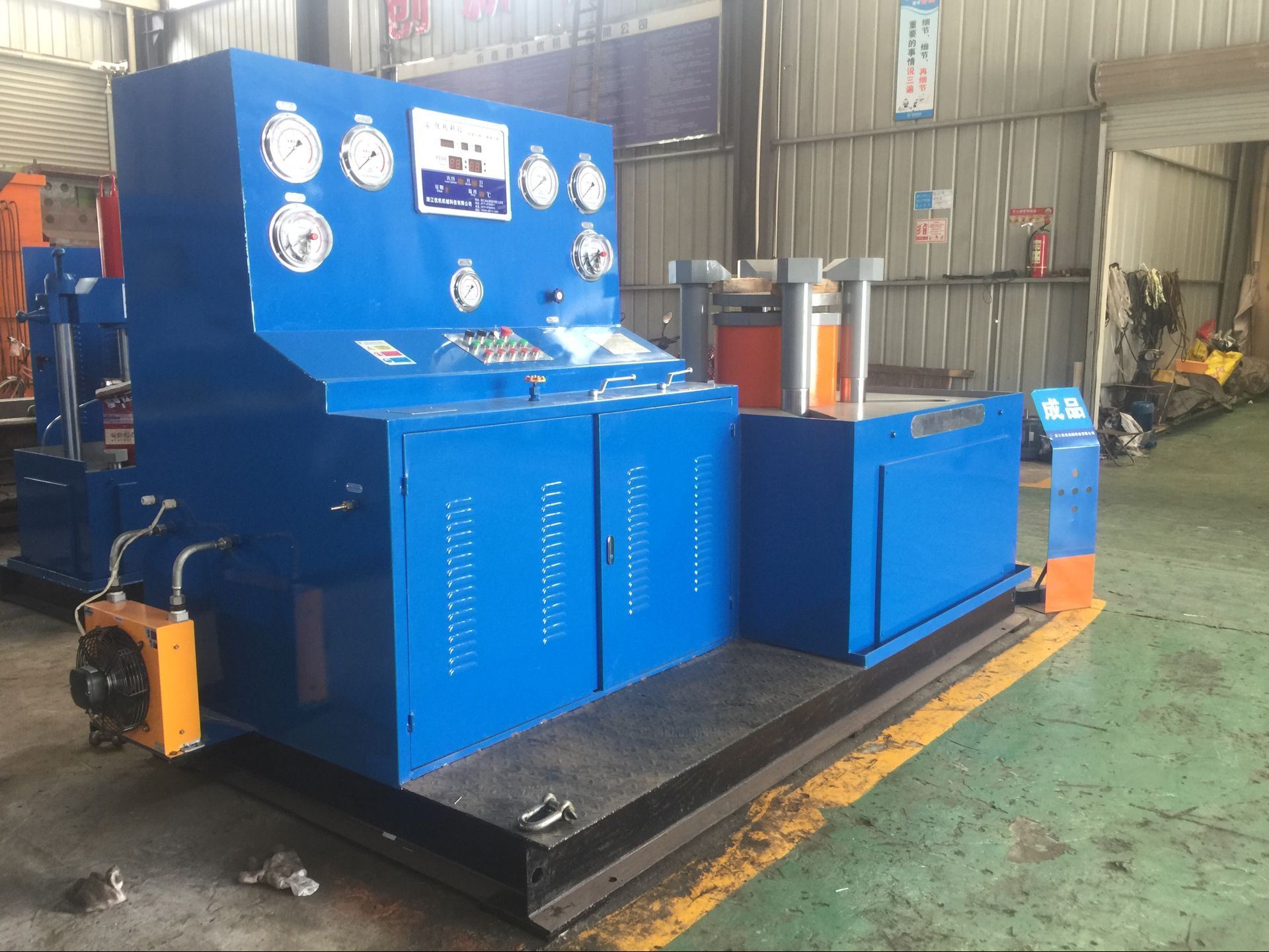 三、接通電源,按油泵啟動按鈕,檢查電機轉(zhuǎn)動方向,是否正確(順時針方向)進行5 — 10分鐘空載運轉(zhuǎn)后,調(diào)節(jié)油泵壓力在5 0MPa進行試機,各種動作,檢查各管路有無泄漏,發(fā)現(xiàn)不良現(xiàn)象,應立即停機排除。