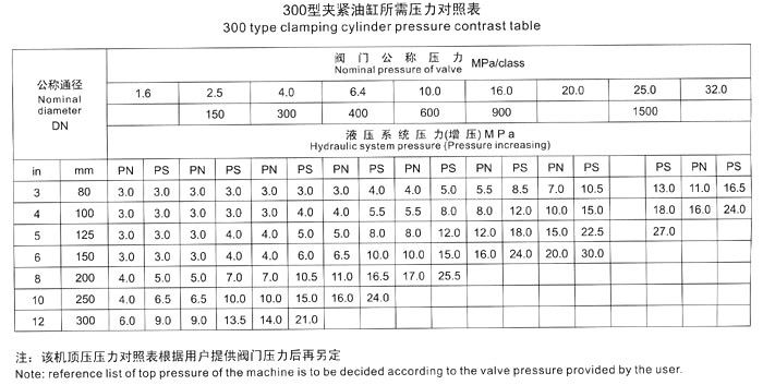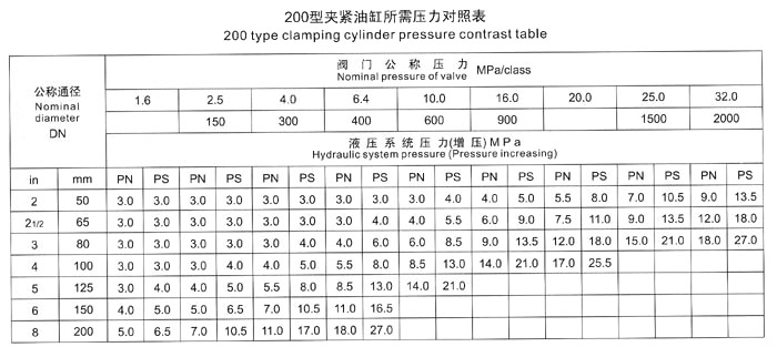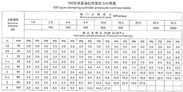 五、測(cè)試閥門時(shí),首先根據(jù)被試閥門試驗(yàn)壓力,要求參照《壓緊油缸所需壓力對(duì)照表》中液壓壓緊系統(tǒng)壓力值,進(jìn)行增壓壓力調(diào)節(jié),嚴(yán)禁增壓壓力值超高、防止被試閥門變形損壞。