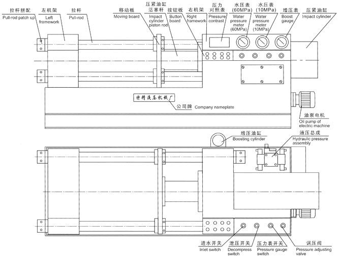 四、接通電源,按油泵起動(dòng),檢查電機(jī)轉(zhuǎn)動(dòng)方向是否正確(順時(shí)針?lè)较?,調(diào)節(jié)油泵壓力在5 0MPa進(jìn)行試機(jī),檢查各管路有無(wú)泄漏,發(fā)現(xiàn)不良現(xiàn)象應(yīng)立即進(jìn)行檢修。