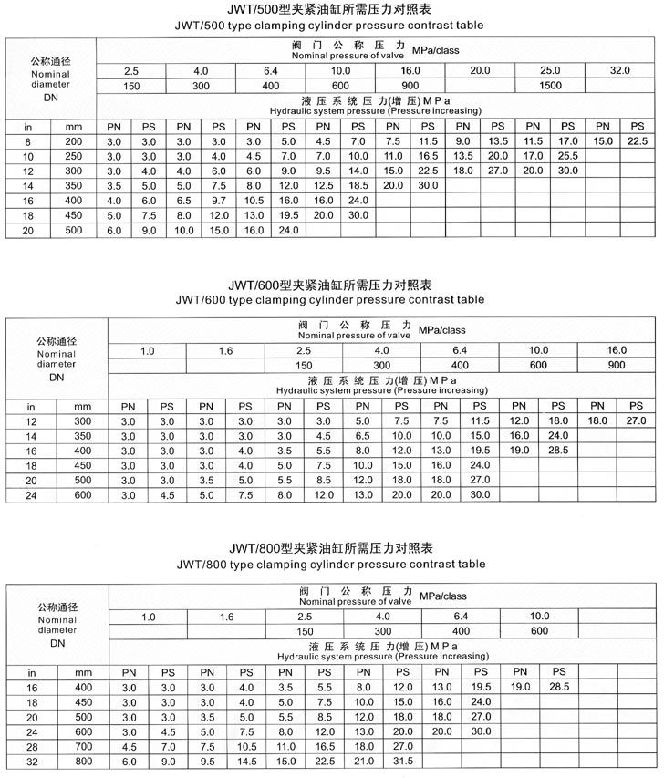 根據(jù)被試閥門(mén)公稱(chēng)通徑和公稱(chēng)壓力,調(diào)節(jié)電接點(diǎn)壓力表和被試閥門(mén)壓力相同。參照《壓緊油缸所需壓力對(duì)照表》將壓緊油缸壓力增壓到所需壓力要求。 (注:增壓按鈕可要多次點(diǎn)動(dòng),每次按動(dòng)相隔時(shí)間需在5-10秒鐘左右)。