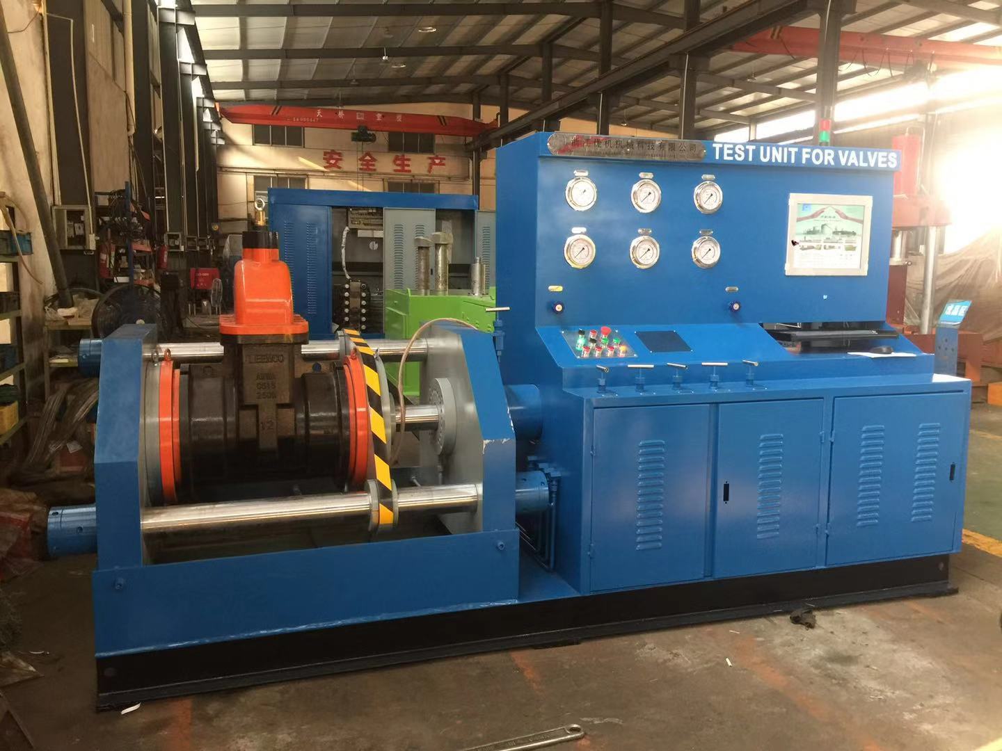 JWZ-Z200型智能PLC控制閥門液壓測試臺(tái)自主研發(fā)的新一代抱壓式液壓閥門測試臺(tái)并擁有發(fā)明技術(shù)知識(shí)產(chǎn)權(quán),專利號(hào)ZL2016 1 0260566.7本機(jī)由液壓系統(tǒng)、PLC電腦控制系統(tǒng)、高低壓水泵供壓裝置系統(tǒng)、油壓、水氣壓儀表系統(tǒng)、控制閥門系統(tǒng)、夾緊工作臺(tái)系統(tǒng)和液壓介質(zhì)儲(chǔ)存循環(huán)水箱組成,測試過程與結(jié)果,符合有關(guān)規(guī)定和要求。